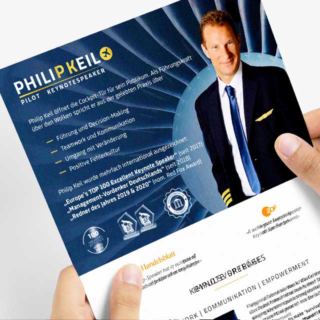 Mit 22 Jahren einer der jüngsten Verkehrspiloten Deutschlands, sammelt Philip Keil in zwei Jahrzehnten über 9.000 Flugstunden Erfahrung auf vier Kontinenten. Ein Flug verändert sein Leben. Seither teilt „Deutschlands bekanntester Pilot“ (ERFOLG Magazin) seine Erlebnisse und Erfahrungen zum Thema Teamwork und Zusammenarbeit als Autor, als Experte im TV und europaweit als Redner für Unternehmen aller Branchen.